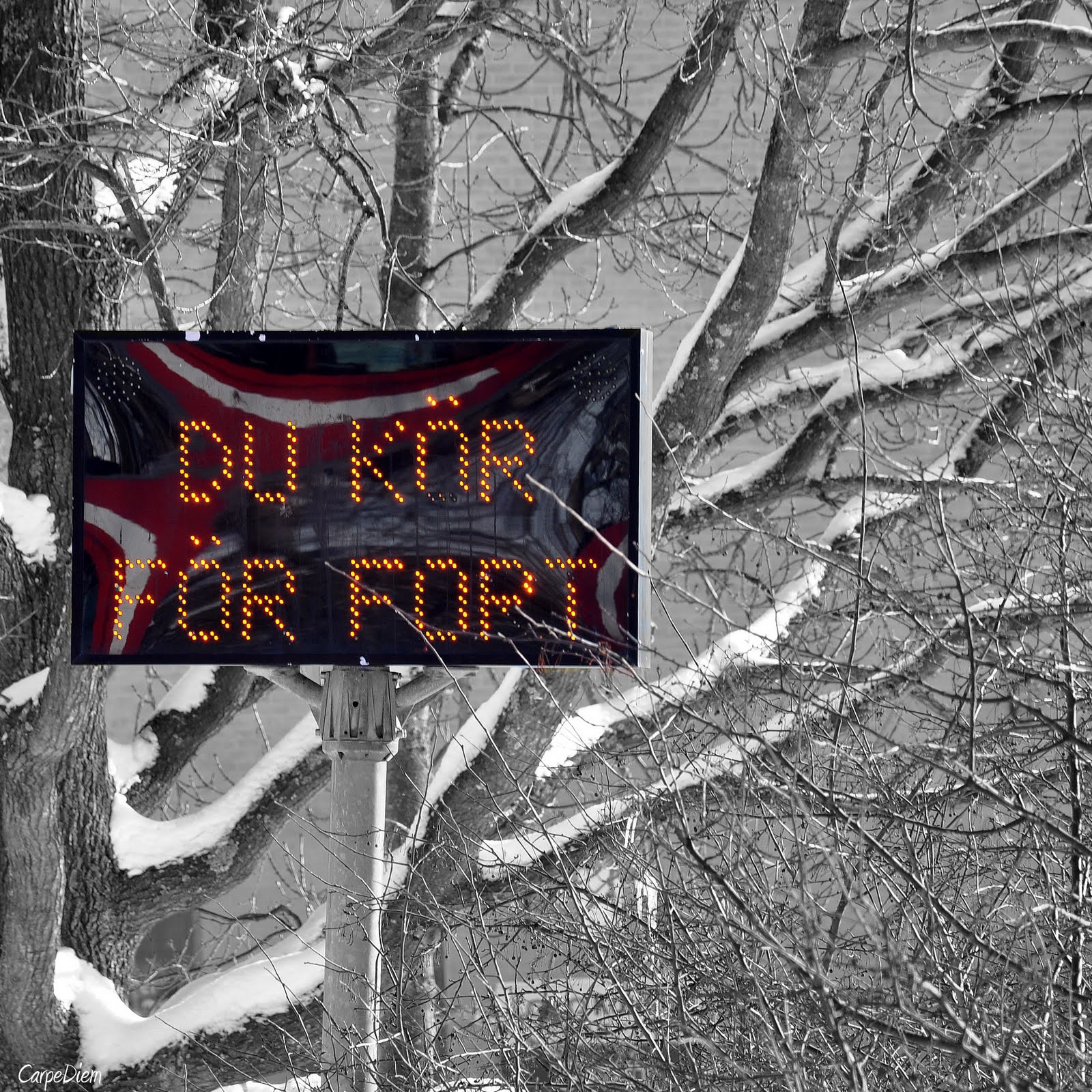 De borde uppdatera budskapet till "du kör för fort...och fotar samtidigt, dessutom!" ;D